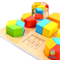 Napravljeno od drveta i dijelova koji su pogodni za djecu. Potpomaže razvoju oko-ruka koordinacije, vještini rješavanja problema kao i prepoznavanju oblika i raspoznavanju cijelina i dijelova.