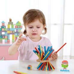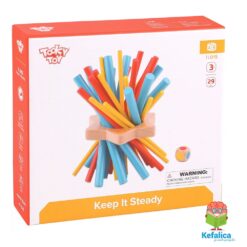 Ova praktična, mala igrica “Keep it Steady” promoviše spretnost i logično razmišljanje, jer se radi o prepoznavanju drvenog štapa koji možete izvući, a da se okvir ne sruši. Budući da se igra idealno igra u parovima, promoviraju se društvene vještine djece. Svijetle boje drvenih štapića također su vrlo privlačne maloj djeci. Dimenzije: 20×18.8×4.2cm.