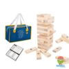 Ova divovska igra s drvenim kockicama je laka i zabavna za korištenje. Možete bacati jednu po jednu ili sve zajedno u zavisnosti od igre. Kocke su napravljene od kvalitetnog borovog drveta, brušenog tako da nema tvrdih ivica. Budući da je borovo drvo mekše, mogu uživati i u zatvorenom i na otvorenom. Kada se igra završi, mogu se vratiti u torbu i lako odnijeti na sljedeću igru. Dimenzije: 13×13×13.5cm.