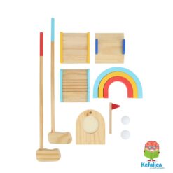 Počastite svoju porodicu i prijatelje zabavnom igrom golfa u svom dvorištu. Ovaj set dolazi u kompletu sa 2 drvene palice za golf, lopticama i dodatnim dodacima koji će igru učiniti zabavnom. Sve je napravljeno od kvalitetnog borovog drveta, brušenog tako da nema tvrdih ivica. Po završetku sve se vraća u torbu spremno za sledeću utakmicu. Ovaj set je savršen za rekreativnu ili natjecateljsku igru, unesite klasiku u dvorište. Dimenzije: 59.4×8.4×20.4cm.