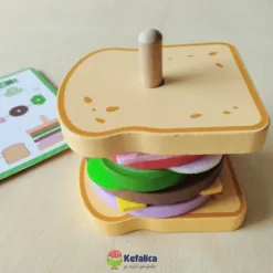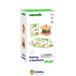 Pravljenje sendviča je zabavna i edukativna igračka koja omogućava djeci da se upuste u kreativnu igru kuhanja, razvijajući svoje motoričke, logičke i kognitivne vještine. Ovaj set sastoji se od različitih drvenih sastojaka poput kriški hljeba, povrća, sira, mesa i drugih dodataka, koji se slažu jedan na drugi kako bi se kreirao savršen sendvič. Uz pomoć priloženih kartica s narudžbama, djeca mogu učiti kako pravilno kombinovati sastojke i slijediti jednostavne upute, što doprinosi razvoju koncentracije i strpljenja.