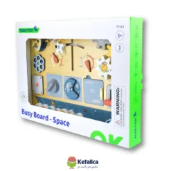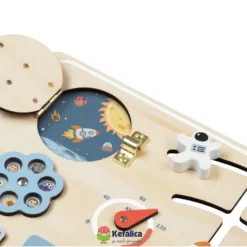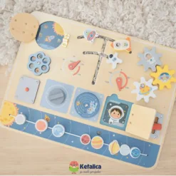 Ova interaktivna ploča omogućava mališanima da kroz igru razviju motoričke i kognitivne sposobnosti. Istovremeno istražuju osnovne pojmove o planetama i mehaničkim sistemima. Manipulacijom poluga, dugmadi i zupčanika, djeca uče kako funkcionišu različiti mehanizmi i razvijaju osjećaj za uzročno-posljedične odnose.