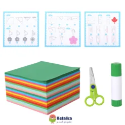Set sadrži 500 papira u raznim bojama i uzorcima, kao i makaze i ljepilo, omogućavajući djeci da izrađuju raznolike cvjetne dekoracije, 3D cvjetove i ukrase. Ova aktivnost ih upoznaje s osnovama geometrije i dizajna, dok istovremeno pruža sate zabavne i edukativne igre.