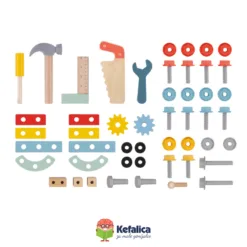 - Sadrži 5 različitih alata: Djeca mogu koristiti čekić, ključeve, lenjir, odvijač i testeru.