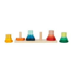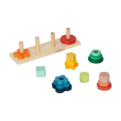 Toranj sa oblicima i bojama je interaktivna drvena slagalica koja pomaže mališanima da kroz igru razvijaju finu motoriku, koordinaciju oko-ruka i logičko razmišljanje. Ova igračka sadrži tri kolone sa geometrijskim oblicima koje djeca slažu po veličini i boji, čime stiču osnovna znanja o prostornim odnosima i prepoznavanju oblika.