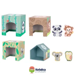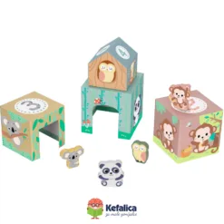 Kutije su oslikane motivima prirodnih staništa životinja, što dodatno pomaže djeci da povežu životinje s njihovim domovima. Na svakoj kutiji se nalaze i brojevi, pa dijete kroz igru uči i osnovne matematičke pojmove poput veličine, redoslijeda i slaganja od najveće do najmanje. Ova slagalica nije samo zabava, već i koristan alat za razvoj raznih kognitivnih i motoričkih sposobnosti.
