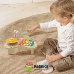 Sviranjem na drvenom muzičkom centru, dijete uči da povezuje pokret i zvuk, razvija osjećaj za ritam i uči prepoznavati različite tonove. Ova aktivnost istovremeno jača motoriku, koncentraciju i kreativno izražavanje – što su ključni elementi u ranom razvoju.
